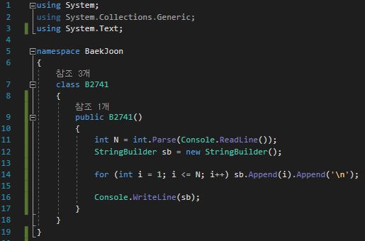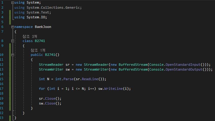 백준 2741번으로 테스트를 해봤습니다.