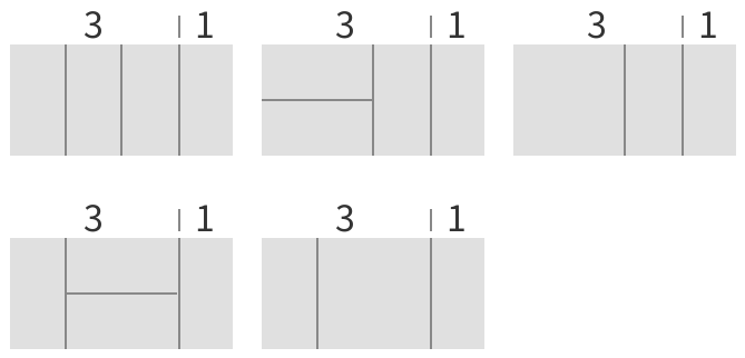 ③ 2X3 직사각형을 먼저 쓰고 2X1 직사각형을 사용하는 방법이 있습니다.