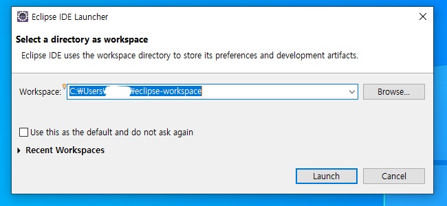 설치가 완료되면 LAUNCH를 눌러 한번 이클립스를 실행시켜보세요!