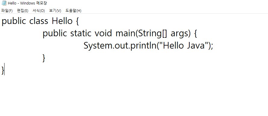 메모장에서 간단하게 자바를 짜주면 됩니다. 파일 이름을 저장할 때 (제목).java로 해주시면 돼요.