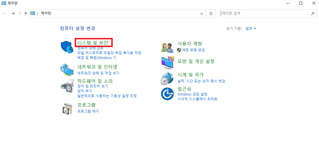 제어판 창에서 시스템 및 보안을 클릭하신 다음에