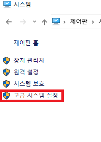 고급 시스템 설정을 누르면!!