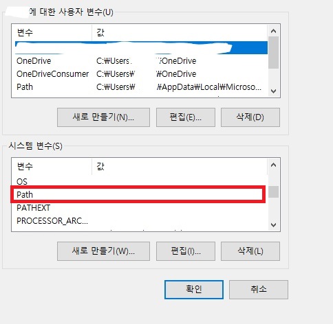 시스템 변수에 찾아보시면 Path라고 있을거에요. 저것도 클릭! 해주세요.