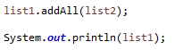 list2의 {5, 6, 7}이 list1의 index 3 에서부터 추가됐습니다. list2에 값이 들어있기 때문에 true를 반환합니다.