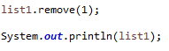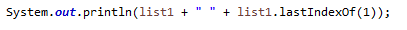 뒤에서 부터 확인해서 1을 삭제하고 싶으면 list1.remove(list1.lastIndexOf(1));로 하면 index 8 위치에 있는 1이 삭제됩니다. 지금은 indexOf(1)이기 때문에 index 1 위치에 있는 1이 삭제됐습니다.