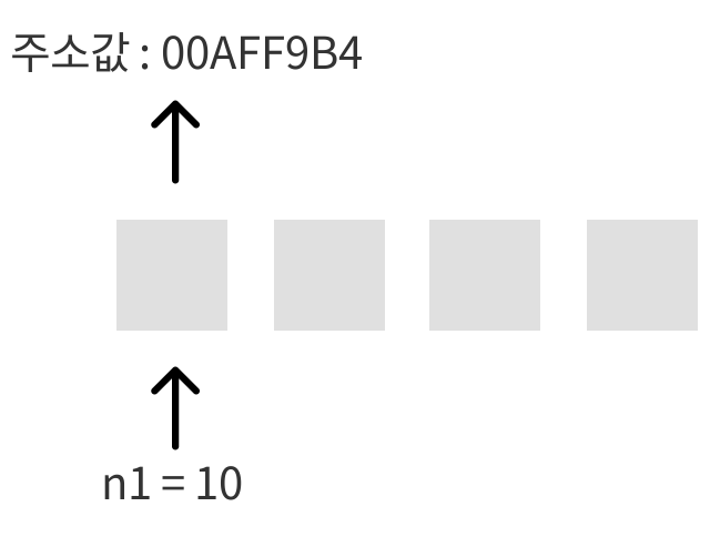 그래서 &n1을 출력하면 00AFF9B4를 출력하게 되고, n1을 출력하면 10을 출력합니다.