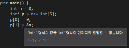 왜 저런 오류가 나오는지 int*를 만들어서 실험해봤습니다.