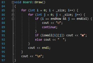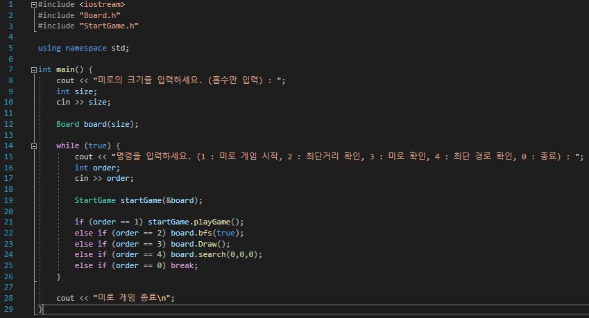 [사진 2]는 [사진 1]에서 구현한 미로를 콘솔창에 출력하기 위한 코드입니다.