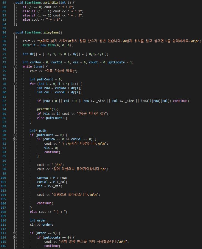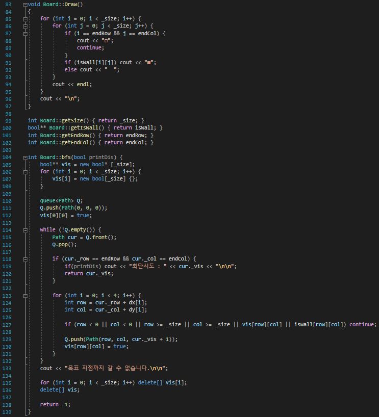 79 - 탈출구가 들어갈 공간이 벽이 아니고, bfs(false)의 결과가 _size보다 크면 반복문을 종료합니다.