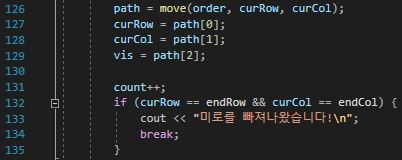 endRow와 endCol은 탈출구 위치를 저장할 행열입니다.