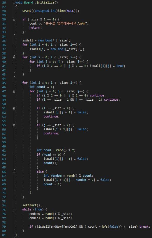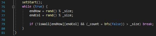 76,77 - 미로 맵의 사이즈보다 작은 수를 랜덤으로 넣어줍니다.