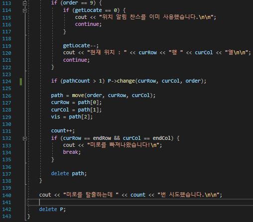 저는 미로 게임 진행하다가 벽을 마주하면(더 이상 나아갈 길이 없을 때) 한번에 갈림길로 돌아가는 방법을 구현하고자 했습니다.