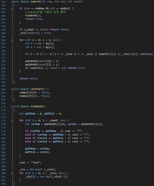이 방법으로 구현한 이유는 현실에서 미로를 탈출하다 보면, 벽을 마주할 때가 있습니다.