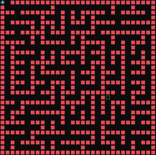 기존에 만들었던 미로 생성 방식인 SideWinder 알고리즘으로 생성한 미로를 확인해보면,