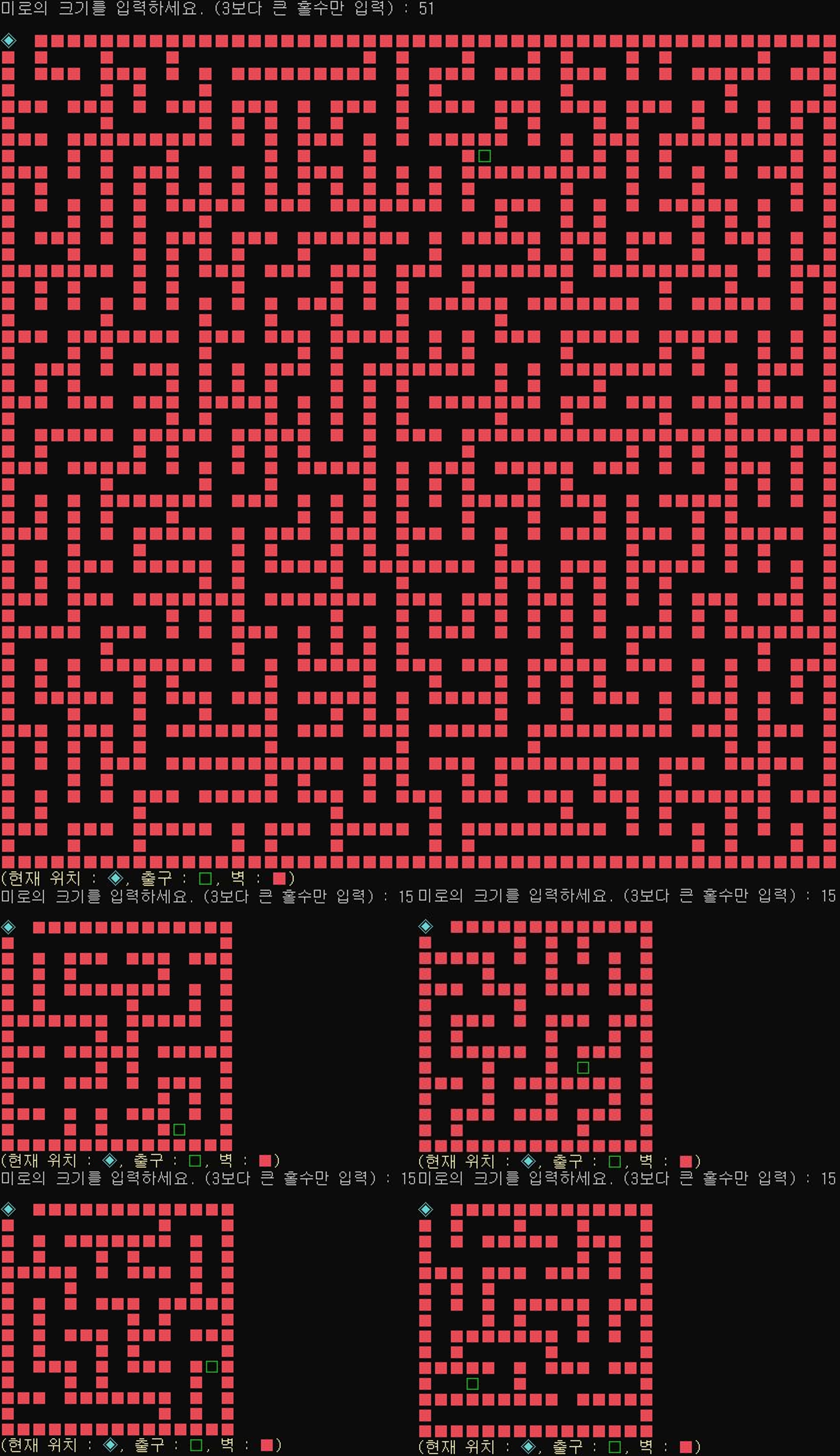 미로 게임 프로젝트의 미로 생성 방식을 변경했습니다.