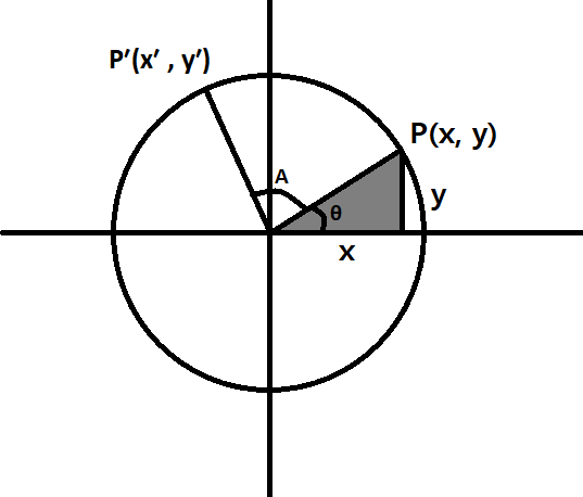 즉, x와 y 좌표를 A만큼 회전시키면 P′(x′, y′)를 알 수 있습니다.