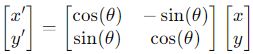 여기서 회전 행렬과 P′의 좌표를 구하는 식이 어떻게 나왔는지 궁금해 찾아본 내용을 정리하겠습니다.
