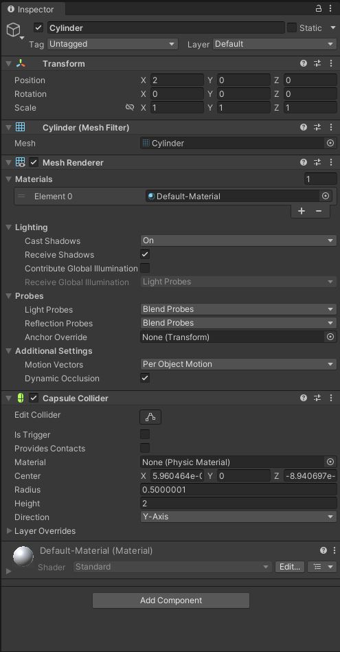 유니티로 예를 들자면, Cylinder의 Capsule Collider는 Collider의 기능만 가져야합니다.